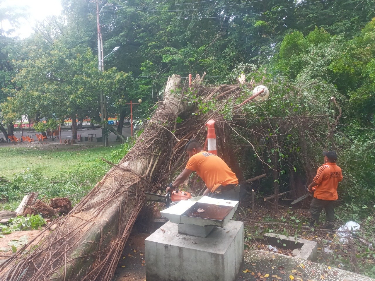 Hujan Deras Dan Angin Kencang Mengakibatkan Pohon Tumbang Di Lima Titik Kota Padang.