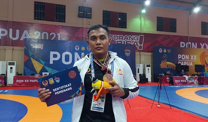 PON XX Papua : Pegulat Sumbar Husnul Amri Kirim Lagi Medali Perak Untuk Sumbar