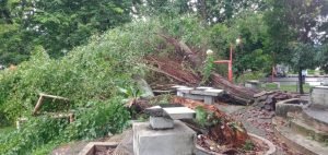 Dua pohon jenis Lansano yang tumbang di Taman Catur komplek GOR. H. Agus Salim Padang