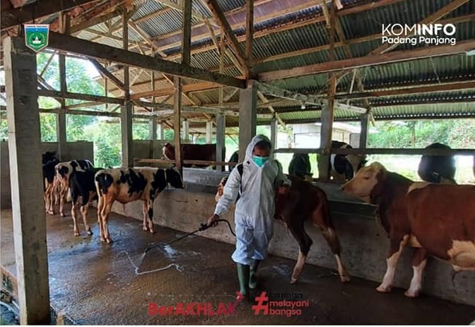 Demi Cegah PMK, Padang Panjang Lakukan Penyemprotan Disinfektan Pada Kandang Sapi
